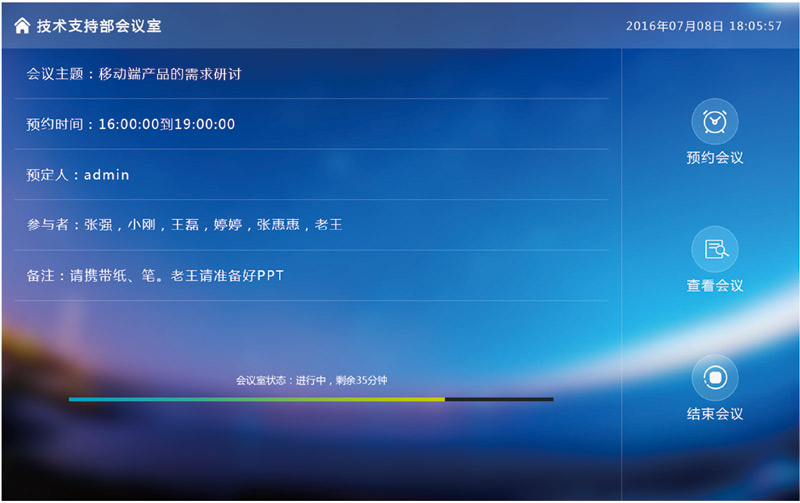 2:管理(lǐ)人(rén)員(yuán)可(kě)以通(tōng)過觸摸屏前端方便,便捷預約會(huì)議(yì)室
